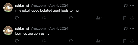 i honestly thought i'd have more less serious posts but i was wrong x_x a lot of them were talking about my irl crush or something that happened that i didnt want to put on main
